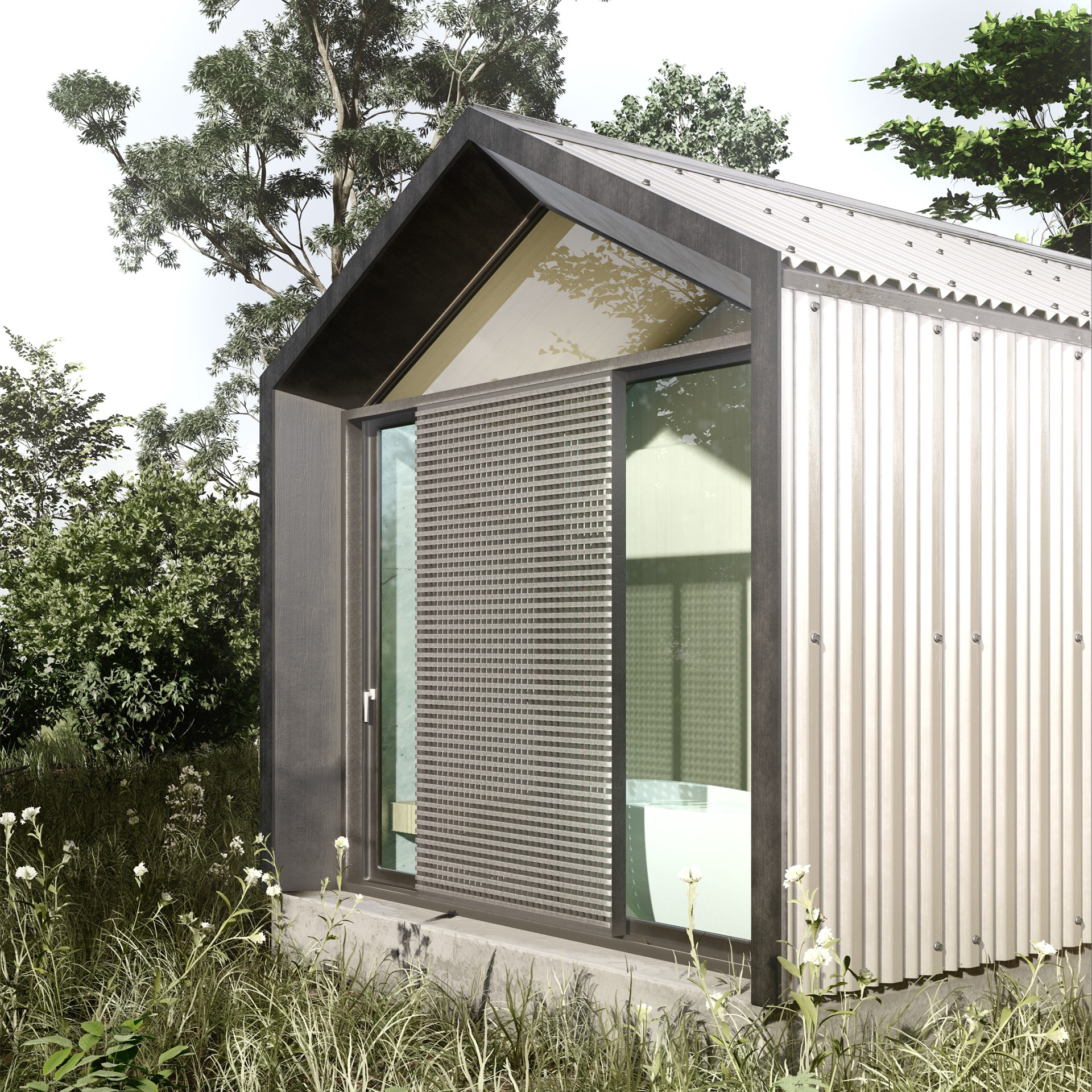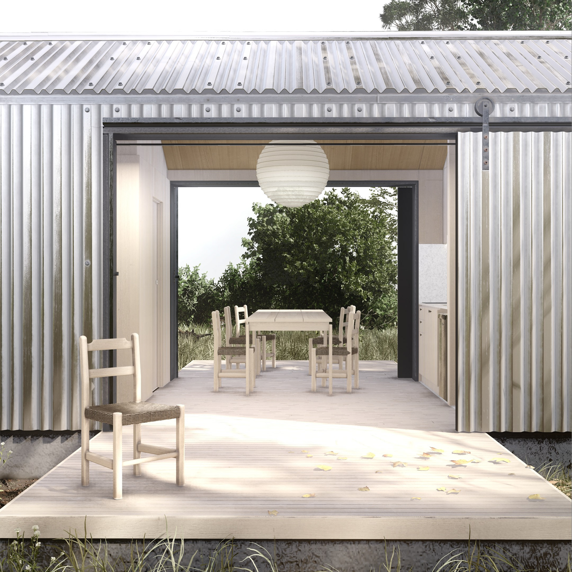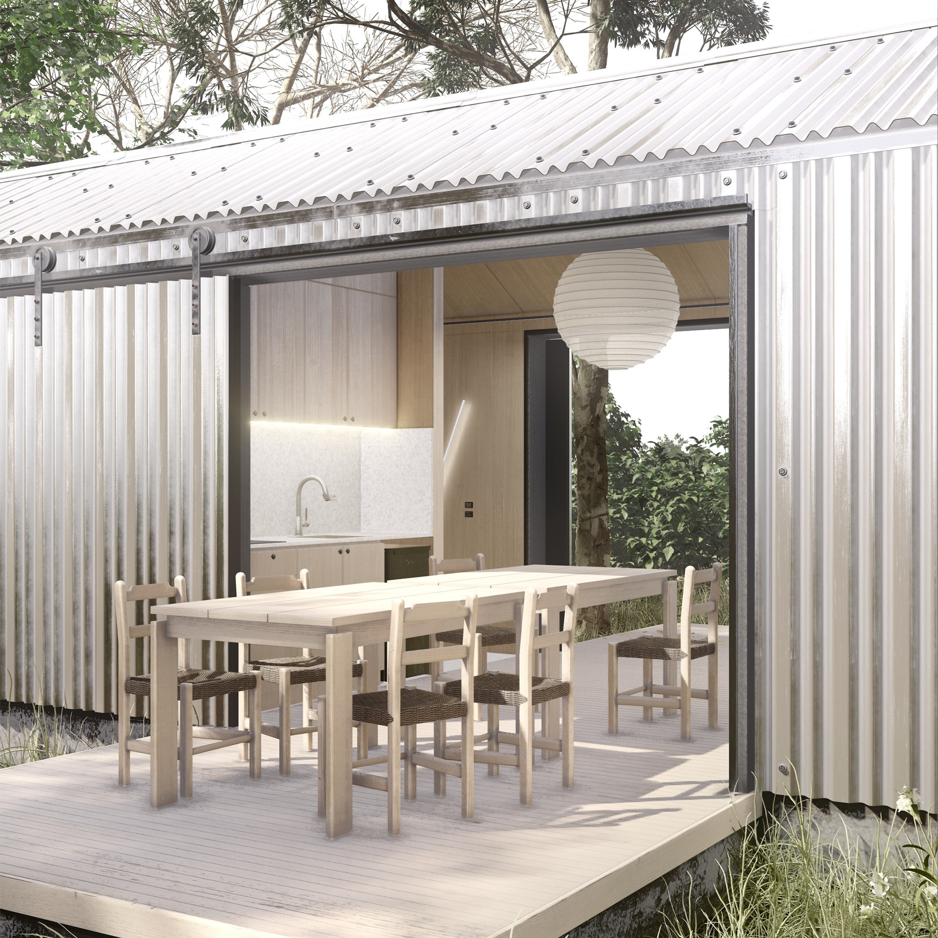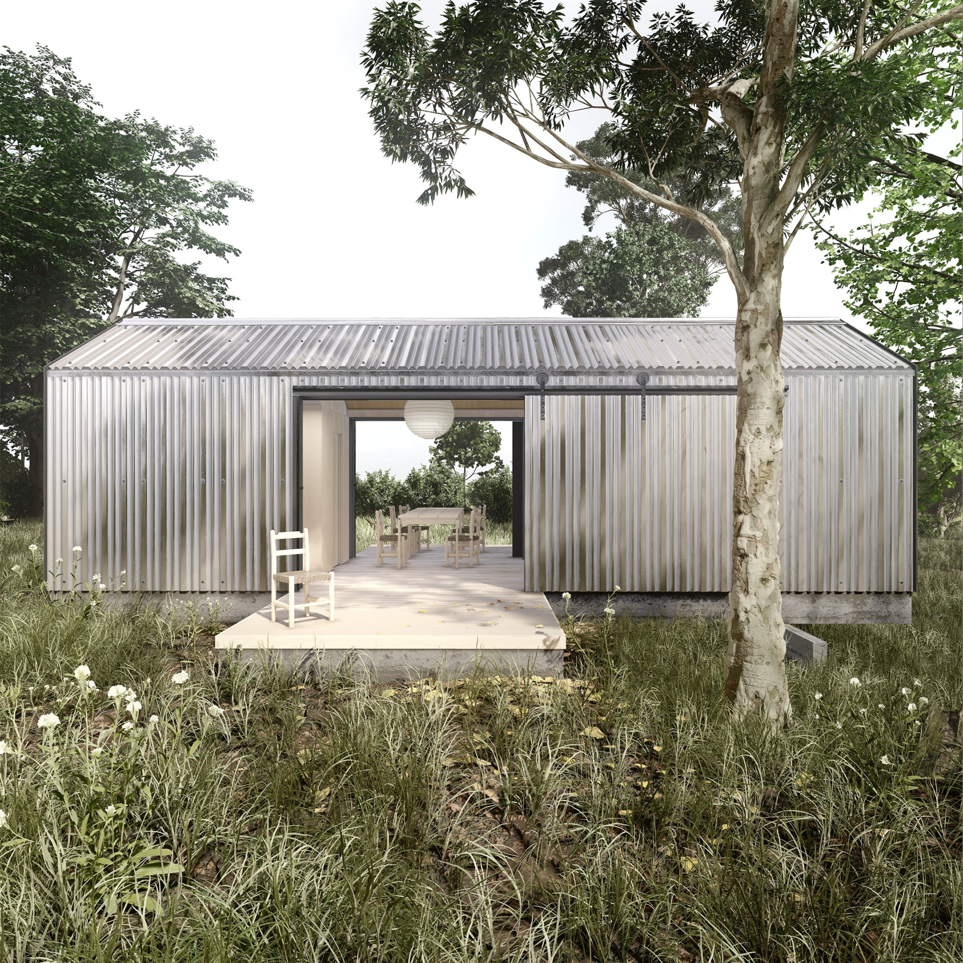 Refúgio | Explorando a simplicidade volumétrica de uma cabana. O projeto busca proporcionar boas experiências ao usuário, com um layout inteligente e um sistema construtivo eficiente. O deck de madeira, estrategicamente posicionado, amplia a área social para além das paredes, ao mesmo tempo que define a área de banho e dormitório, criando um ambiente acolhedor e funcional.